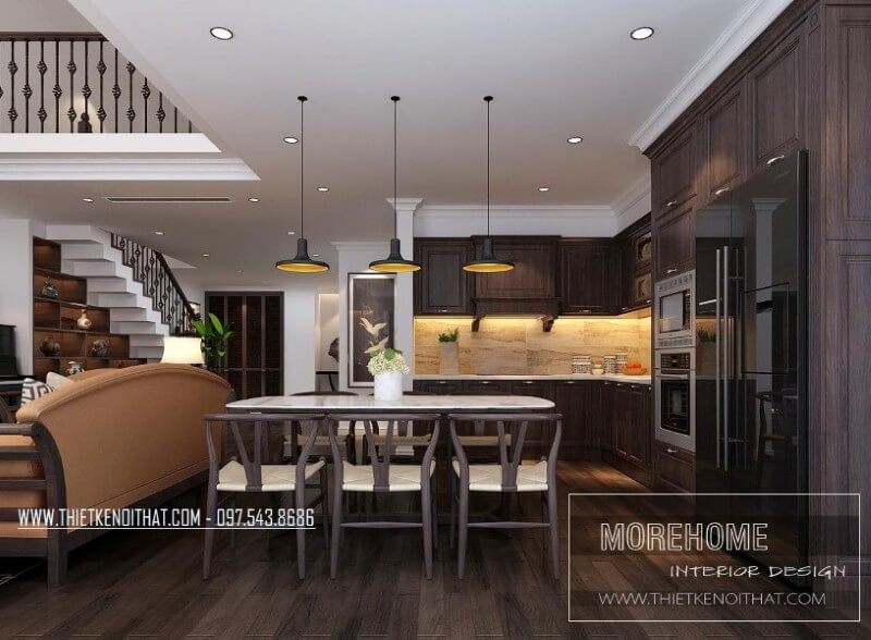 Biệt thự Vincom Sài Đồng được thiết kế nội thất phòng ăn theo phong cách tân cổ điển đẳng cấp.